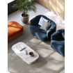 تستكمل طاولات القهوة Afina العرض بسلسلة من الطاولات الأنيقة والمتطورة، مصنوعة من نصفين من المعدن المطلي ومزودة بسطح متاح بمجموعة من التشطيبات والمواد مثل الميلامين، الخشب بحواف مستديرة أو الزجاج الملون بأشكال مستديرة وملمس ناعم. تتوفر طاولات القهوة Afina بثلاثة أحجام مختلفة: 120×60×24 سم، 60×60×35 سم، و80×80×35 سم. يبلغ ارتفاع طاولة القهوة 80×80 سم 35 سم وتُستخدم أيضًا كعنصر زاوية بين أريكتين. يمكن تجهيزها اختياريًا بمقبس كهربائي لتلبية احتياجات الاتصال والتشغيل المتزايدة.