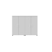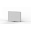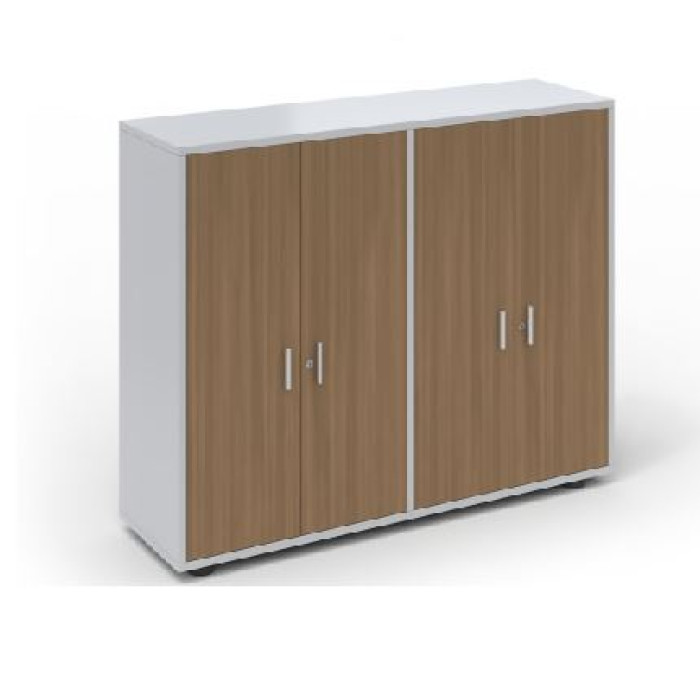 خزانة متوسطة الارتفاع، ألواح من الخشب الحبيبي بلمسة نهائية من مادة MFC. يبلغ سمك الهيكل والأبواب 16 مم، بينما يبلغ سمك الأرفف 25 مم. جميع الحواف مستقيمة ومطلية بمادة PVC بسمك 2 مم.