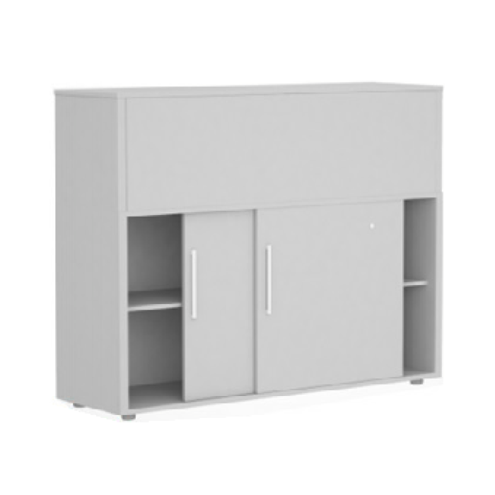 خزانة متوسطة الارتفاع، ذات وجهين. يحتوي أحد الجانبين على رفين مفتوحين، ويحتوي الجانب الآخر على بابين منزلقين مع أرفف. ألواح من الخشب الحبيبي بلمسة نهائية من مادة MFC. يبلغ سمك الهيكل والأبواب 16 مم، بينما يبلغ سمك الأرفف 25 مم. جميع الحواف مستقيمة ومطلية بمادة PVC بسمك 2 مم.