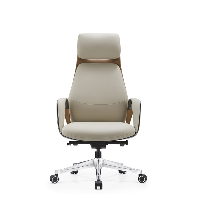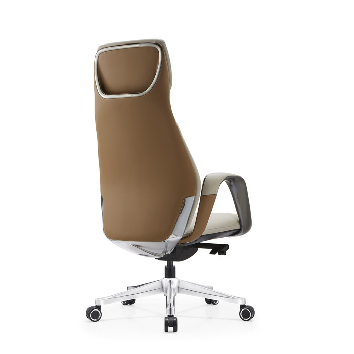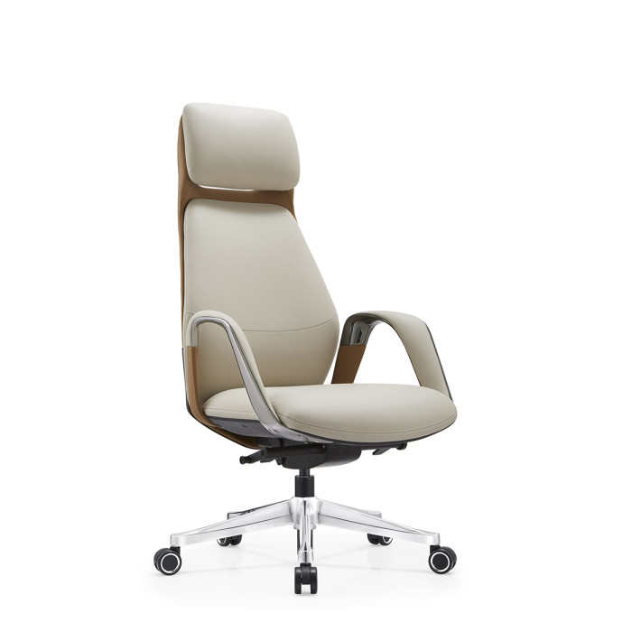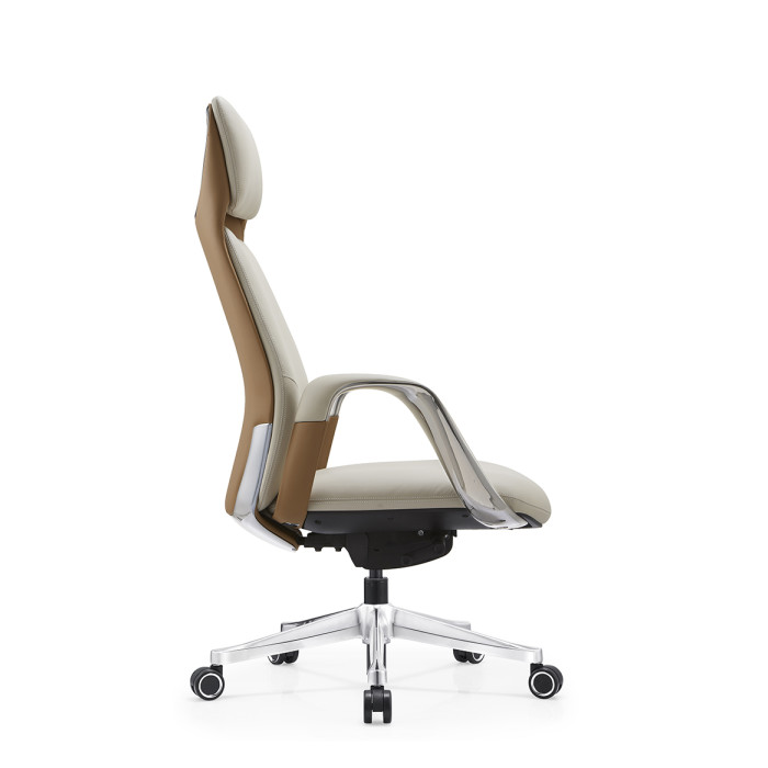 كرسي تنفيذي مرتفع الظهر، مبطن بالجلد الطبيعي. مبطن