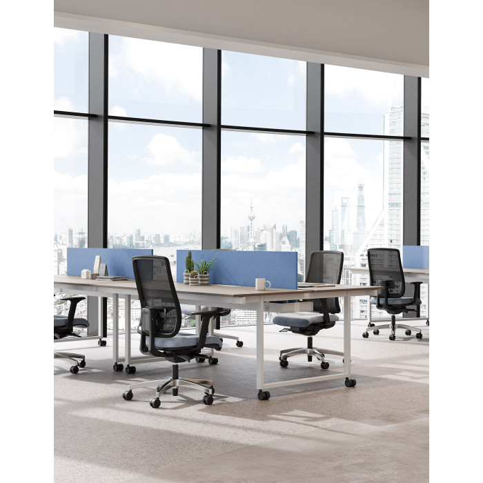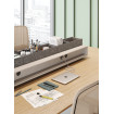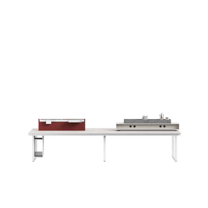 تصميم طاولات العمل المشتركة Be.1 يهدف إلى تشجيع العمل الجماعي والتفاعل المباشر بين الزملاء. تتميز هذه الطاولات بمرونتها، حيث تتوفر بعمقين (125 و 165 سم) مما يسمح بإنشاء تركيبات لا نهائية بمقاسات مختلفة، وتتميز بتنوع التشطيبات والحلول التقنية، مما يساعد في تحسين استخدام المساحة المتاحة. يمكن تخصيص محطات العمل المشتركة بإضافة شاشات فاصلة من الميلامين، أو مغطاة بالقماش، أو من الزجاج لضمان التوازن المناسب بين الخصوصية والعمل المشترك. يمكن إرفاق مختلف الملحقات بالشاشات الفاصلة، مثل حوامل الأدوات المكتبية، وحوامل الأوراق، وحوامل الأغراض، وحوامل المستندات. عائلة Be.1 تكتمل مع حلول التخزين المتعددة، سواء كانت مستقلة أو مدمجة مع محطات العمل. المواد: ميلامين سُمك السطح: 18 ملم الأحجام المتاحة خلال فترة التسليم: 1200 عرض × 1250/1650 عمق × 740 ارتفاع ملم 1400 عرض × 1250 /1650 عمق × 740 ارتفاع ملم 1600 عرض × 1250/1650 عمق × 740 ارتفاع ملم 1800 عرض × 1250/1650 عمق × 740 ارتفاع ملم