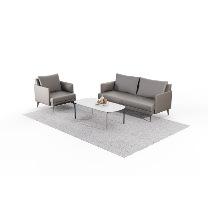 طقم كنب، يتكون من كرسيين بذراعين وأريكة بثلاثة مقاعد. إطار داخلي من الخشب الصلب وأرجل معدنية. مقعد وظهر مبطنان بجلد البولي يوريثان. الأحجام: - مقعد فردي: - 780 عرض × 775 عمق × 740 ارتفاع مم ثلاثة مقاعد: - 1780 عرض × 775 عمق × 740 ارتفاع مم الشركة المصنعة / بلد المنشأ:- جيفانكو، جمهورية الصين الشعبية