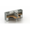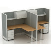 محطة عمل: إطار معدني مع لوحة مبطنة بالقماش وسطح عمل خشبي وقاعدة متحركة بثلاث أدراج.