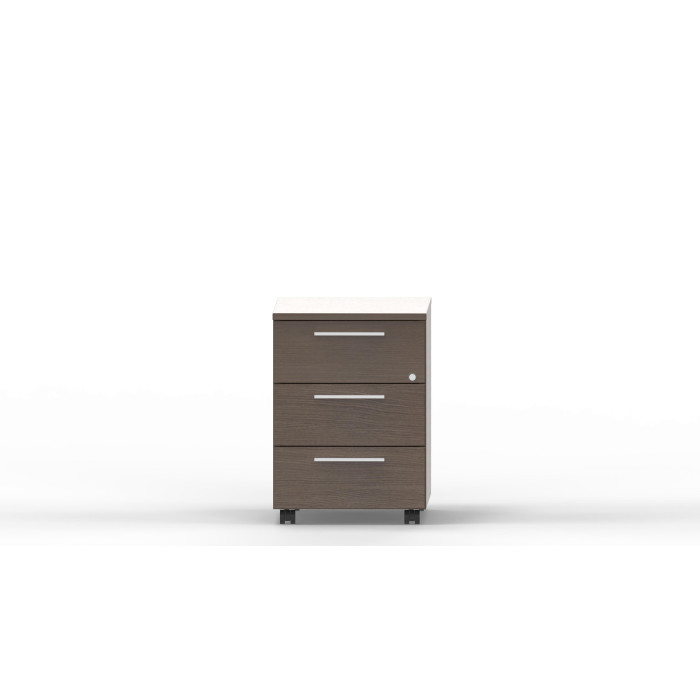 وحدة أدراج متحركة بثلاثة أدراج، الهيكل واللوحات الأمامية مصنوعة من ألواح مغطاة بسمك 18 ملم. لوحات واجهة الأدراج مزودة بحافة من ABS ومزودة بمقبض معدني. المواد: ميلامين سمك الهيكل: 18 ملم سمك اللوحة الخلفية: 12 ملم العجلات: نايلون PA6 قابلة للدوران (ø 45 ملم) الحجم المتوفر: 400W x 590D x 740H ملم الشركة المصنعة / بلد المنشأ: فريزا، إيطاليا