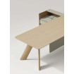 مكتب مستطيل مع تخزين ثابت على اليسار / اليمين. صندوق أسلاك قابل للارتداد مع مقبسين كهربائيين ومنفذ بيانات واحد مع زجاج شفاف على الخزانة الجانبية. تشطيب بميلامين. الحجم: 2100 عرض × 2000 عمق × 750 ارتفاع ملم الشركة المصنعة / بلد المنشأ: Kano.cn، الصين