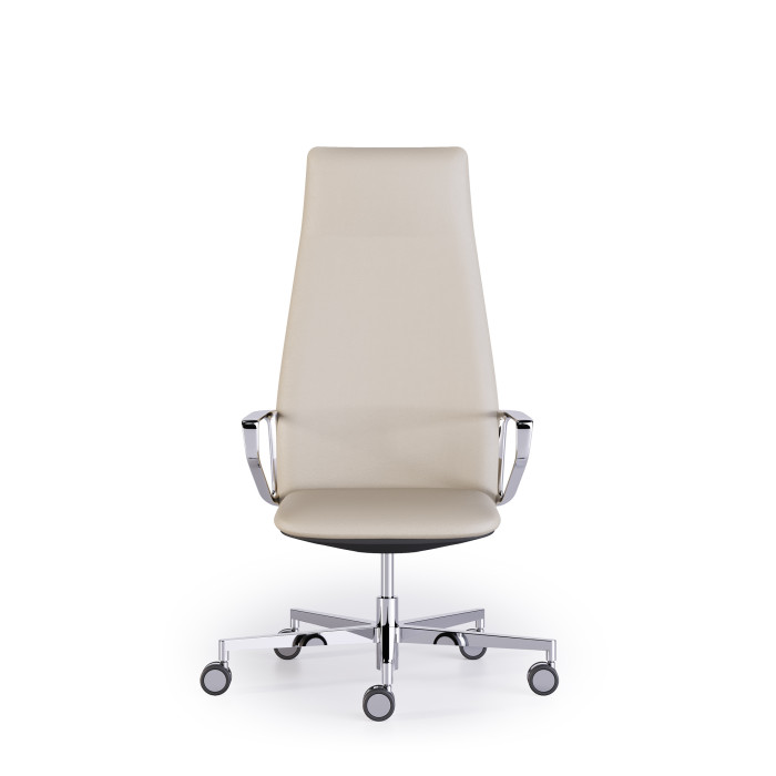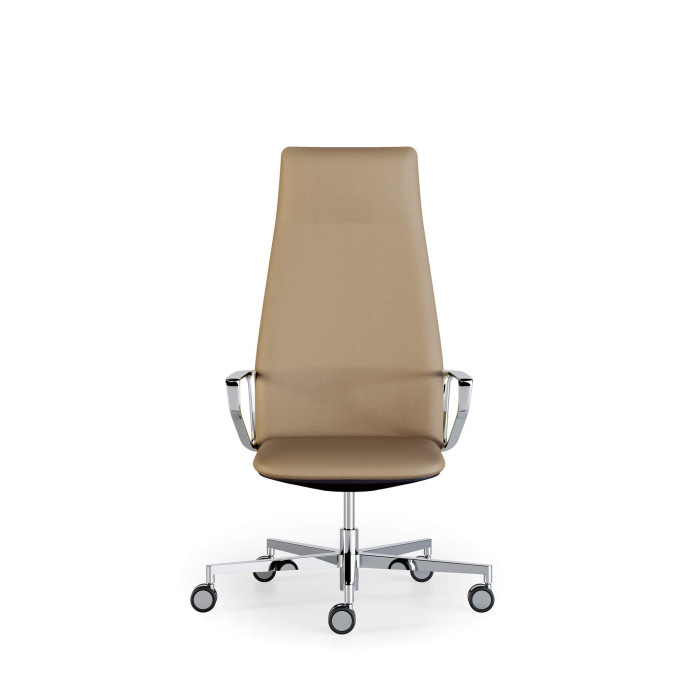 كرسي تنفيذي بظهر عالٍ، ظهر من البولي يوريثان المبرد بالبرودة: مرن (65 كجم/م³)، مقاوم للحريق، خالٍ من مركبات الكلوروفلوروكربون، مع إدخال فولاذي. مقعد Bia Executive: صفيحة معدنية مضغوطة مع حشوة بولي يوريثان مرنة مقاومة للحريق وخالية من مركبات الكلوروفلوروكربون؛ غطاء سفلي للمقعد من مادة البولي بروبيلين. جهاز كرسي Bia Executive: آلية متزامنة ذاتية المعايرة قابلة للقفل في 3 أوضاع مع رافعة مدمجة (زاوية الإمالة: 18° للظهر، 1° للمقعد؛ وضعية البداية للمقعد: 1.5° للخلف). الآلية مدمجة في المقعد وليست مرئية من الخارج. ضبط ارتفاع المقعد عن طريق رافعة مدمجة. مسند ذراع من الألومنيوم المصبوب بالضغط: نوع مغلق، شبه منحرف، مرتبط بالظهر. أجزاء الألومنيوم متوفرة بتشطيب مصقول أو مطلي باللون الأسود. قاعدة خماسية بتشطيب من الألومنيوم المصقول أو مطلي بالإيبوكسي الأسود. عجلات دوارة ذاتية الإغلاق بطبقتين من المطاط. مادة التنجيد: خيارات متعددة - جلد / جلد صناعي / قماش القاعدة: ألومنيوم مصقول / ألومنيوم أسود الحجم: 610 عرض × 550 عمق × 1210-1320 ارتفاع مم الشركة المصنعة / بلد المنشأ: Frezza، إيطاليا