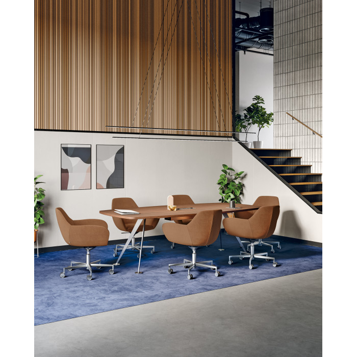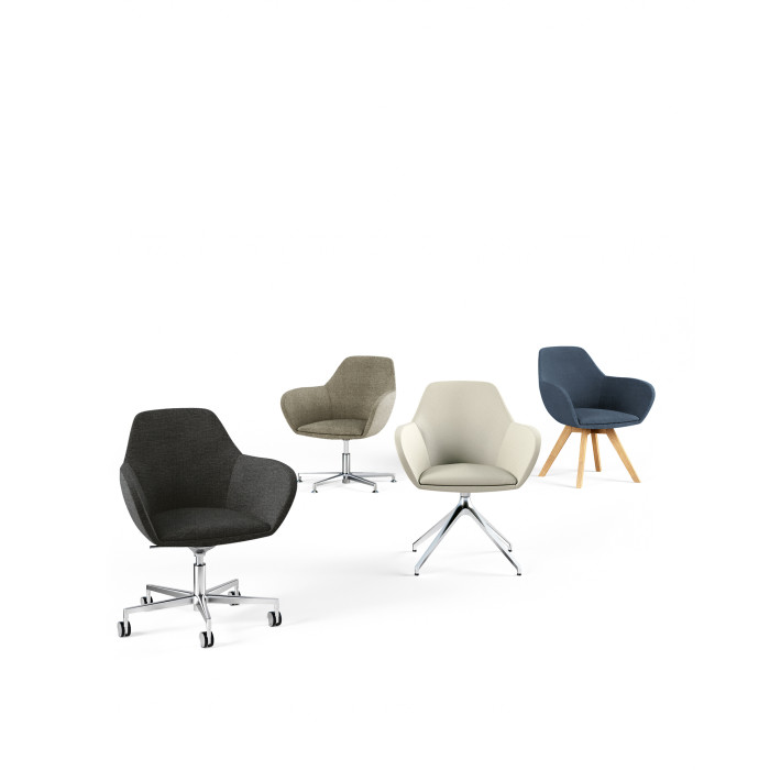 كرسي دوار متعدد الوظائف. مقعد من رغوة البولي يوريثان المقولبة على البارد ومقاومة للحريق؛ إطار من الصلب الأنبوبي مع تنجيد من القماش أو الجلد أو الجلد البيئي. مقعد من الخشب الرقائقي مع وسادة مبطنة. تتوفر القاعدة في الإصدارات التالية: ◊ كرسي دوار مع آلية رفع بالغاز وآلية إمالة مرنة (زوايا الإمالة 7° للخلف - 4° للأمام. موضع المقعد الابتدائي 3° للخلف). قاعدة بخمس نجوم من الألومنيوم المصبوب، مع تشطيب مصقول أو مطلي باللون الأسود؛ عجلات دوارة مطاطية مزدوجة ذات قفل ذاتي (Ø 60 مم للقاعدة المصقولة، Ø 65 مم للقاعدة المطلية باللون الأسود أو الأبيض). ◊ كرسي دوار مع آلية إرجاع تلقائية (دوران 180° يمينًا - 180° يسارًا)؛ قاعدة بخمس نجوم من الألومنيوم المصبوب، مع تشطيب مصقول أو مطلي باللون الأسود، مع قواعد انزلاقية. ◊ كرسي دوار مع قاعدة هرمية بأربع نجوم من الألومنيوم المصقول. ◊ مقعد ثابت: قاعدة بأربعة أرجل مصنوعة من الخشب الصلب ومطلية بورنيش البلوط الطبيعي. ٭ الحجم: 690W × 650D × 810-930H مم (قاعدة بخمس نجوم مع عجلات) ٭ الحجم: 690W × 650D × 830H مم (قاعدة بخمس نجوم مع قواعد انزلاقية) ٭ الحجم: 690W × 650D × 880H مم (قاعدة هرمية بأربع أذرع) ٭ الحجم: 690W × 650D × 850H مم (قاعدة بأربعة أرجل من الخشب الصلب) الشركة المصنعة / بلد المنشأ: Frezza، إيطاليا