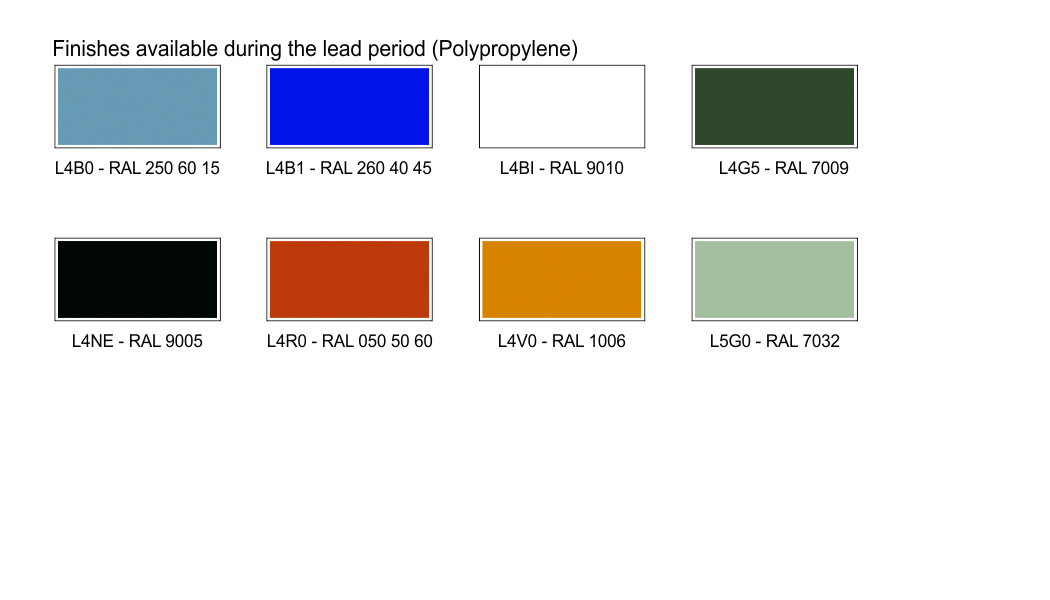 كرسي متعدد الاستخدامات، يتكون من هيكل من مادة البولي بروبيلين مع مساند للذراعين. يتوفر الهيكل الموحد بخمسة ألوان مختلفة، حيث أن اللون Earth L1M2 مصنوع من مادة البولي بروبيلين المعاد تدويره بنسبة 100% والمستدامة بيئيًا بالكامل. بالإضافة إلى ذلك، يتميز اللون Cream L7M1 بأنه مصنوع من مادة البولي بروبيلين المعاد تدويره بنسبة 70% وهو مقاوم للحريق (أي عيوب تظهر تعتبر من الخصائص المميزة للمادة المعاد تدويرها). يمكن إضافة وسادة مغطاة بالقماش أو الجلد الصناعي إلى الهيكل الموحد. يتم ضبط ارتفاع المقعد بواسطة نظام رفع بالغاز (فقط للكرسي المزود بعجلات). تتوفر القاعدة بالإصدارات التالية: ◊ إطار بأربع أرجل من مادة البولي بروبيلين متوفر باللون الأسود (معاد تدويره بنسبة 100%)، أو ملون (بالألوان: Cream، Gentle Blue RAL 250 60 15، Earth، Green Grey RAL 7009) أو بتأثير الفلين. ◊ إطار بأربع أرجل من الخشب الصلب بتشطيب بلوط؛ ◊ قاعدة بأربع نجوم من الألمنيوم المصقول، الأبيض أو الأسود على قواعد ثابتة؛ ◊ قاعدة هرمية بأربع نجوم من الألمنيوم المصقول أو النايلون الأبيض أو الأسود على قواعد ثابتة. ٭ الحجم: 550W × 575D × 820H مم (إطار بأربع أرجل من البولي بروبيلين) ٭ الحجم: 540W × 51D × 805H مم (قاعدة هرمية بأربع نجوم على قواعد ثابتة) ٭ الحجم: 540W × 51D × 805H مم (قاعدة هرمية بأربع نجوم على قواعد ثابتة) الشركة المصنعة / بلد المنشأ: Frezza، إيطاليا
