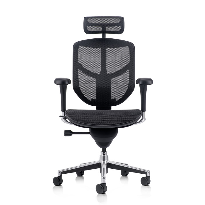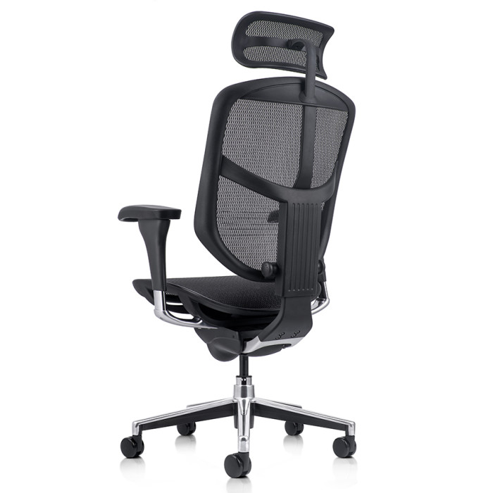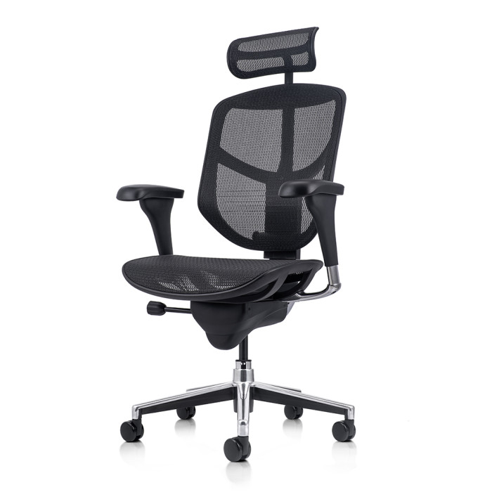 كرسي عمل بمسند ظهر مرتفع مع مسند رأس قابل للتعديل ثنائي الأبعاد وأذرع قابلة للتعديل ثلاثي الأبعاد، متوفر بمقعد مبطن بالقماش وظهر شبكي أو مقعد وظهر شبكيين. دعم أسفل الظهر قابل للتعديل في الارتفاع. قفل وضع الاستلقاء، شد إمالة الظهر. تحكم برافعة واحدة في إمالة الظهر وارتفاع المقعد وانزلاق المقعد. قاعدة من الألومنيوم المصقول بخمس نجوم مع عجلات. المقاس: 680 عرض × 695 عمق × 1150-1390 ارتفاع مم الشركة المصنعة / بلد المنشأ:- راينور، جمهورية الصين الشعبية