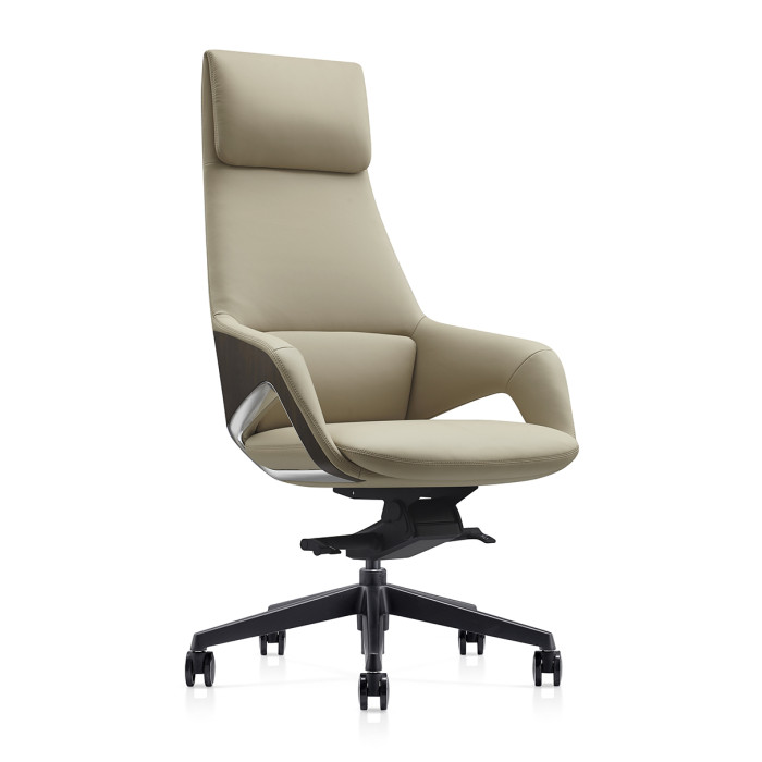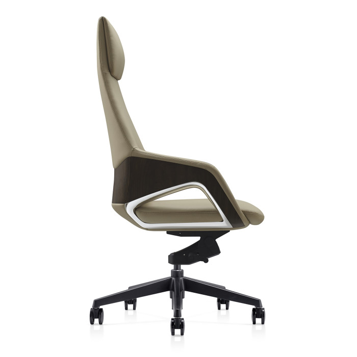كرسي تنفيذي بمسند ظهر مرتفع. تم تصميم الظهر بمادة ABS وطباعة نقل الماء، ورغوة عالية الكثافة مع إطار بلاستيكي بالداخل. آلية إمالة الركبة بقفل 4 أوضاع، وقاعدة من الألومنيوم مطلية باللون الأسود، ورافعة غازية سوداء وعجلات من البولي يوريثين، ومسافة رفع الغاز 100 مم. اللمسة النهائية: جلد البولي يوريثين \ الشركة المصنعة / بلد المنشأ: Furicco Furniture، P.R.C