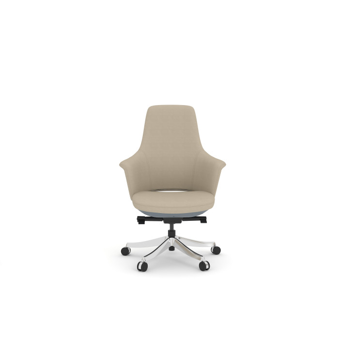 كرسي تنفيذي بمسند ظهر متوسط، جلد طبيعي مبطن بإسفنج مصبوب من الداخل. مسند ذراع من الجلد المنحني، آلية Donati. إمالة متزامنة، خزانة بأربعة أوضاع مختلفة، مقعد منزلق قابل للتعديل. قاعدة من الألومنيوم بخمس نجوم مع عجلات.