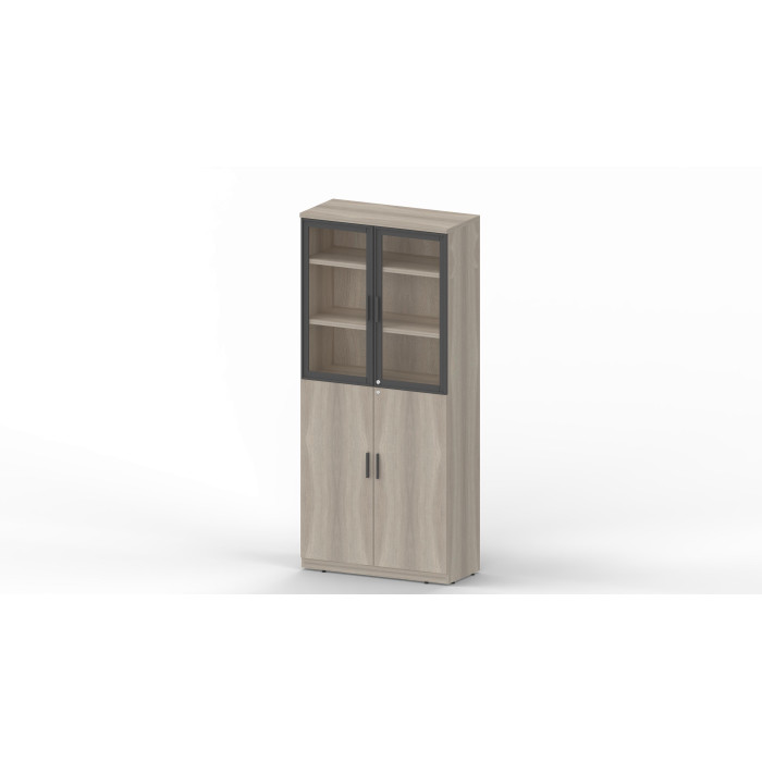 دولاب مع بابين زجاجيين وبابين خشبيين: تشطيب MFC. لوحة لوح حبيبي. الهيكل والأبواب سمك=18مم. الأرفف سمك=25مم. حافة مستقيمة من PVC.