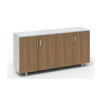 كريدنزا من ألواح الخشب المضغوط بلمسة نهائية من مادة MFC. يبلغ سمك الهيكل والأبواب 16 مم، بينما يبلغ سمك الأرفف 25 مم. جميع الحواف مستقيمة ومطلية بمادة PVC بسمك 2 مم.