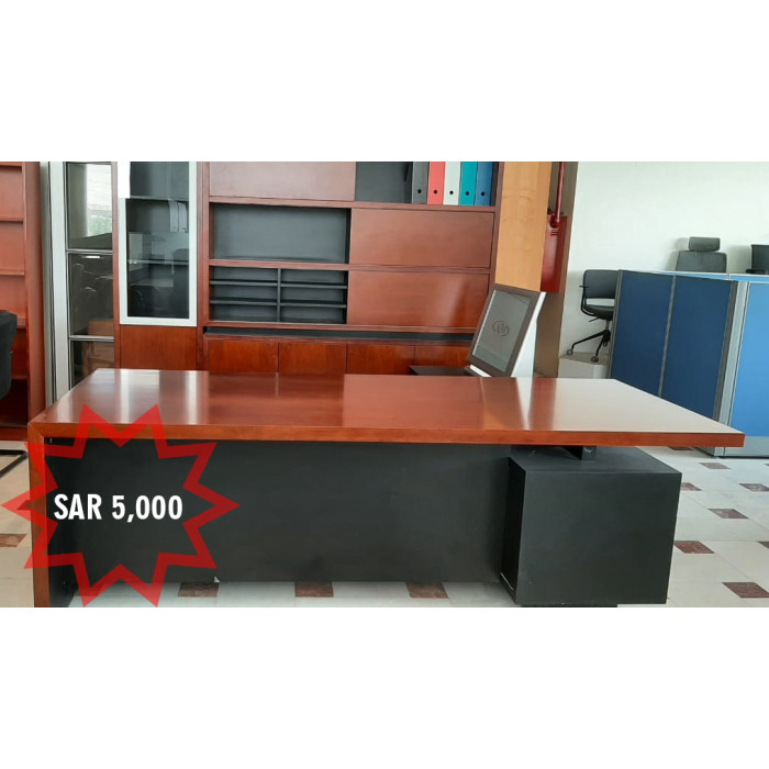 مكتب مع امتداد يسار + خزانة كتب بباب منزلق من خشب الجوز