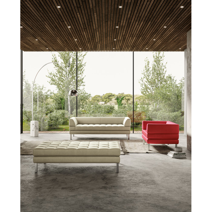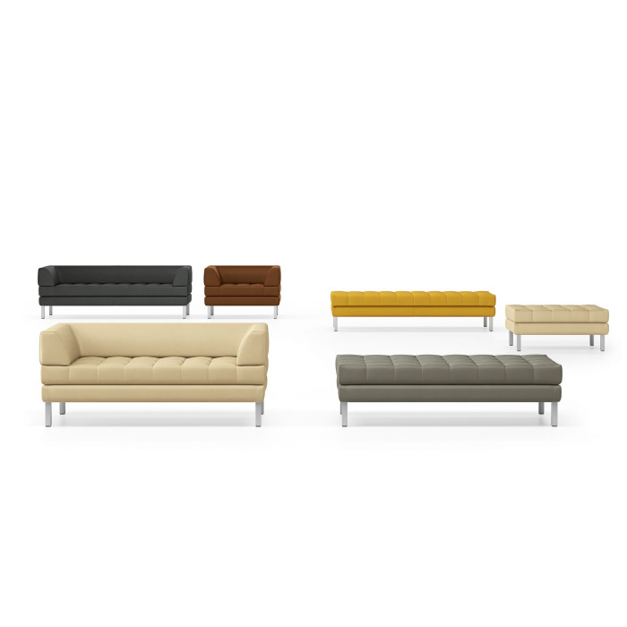 كراسي بذراع واحد، وأرائك، ومقاعد بمقعد واحد، أو بمقعدين أو ثلاثة مقاعد مع مقاعد مبطنة للمناطق الانتظارية.