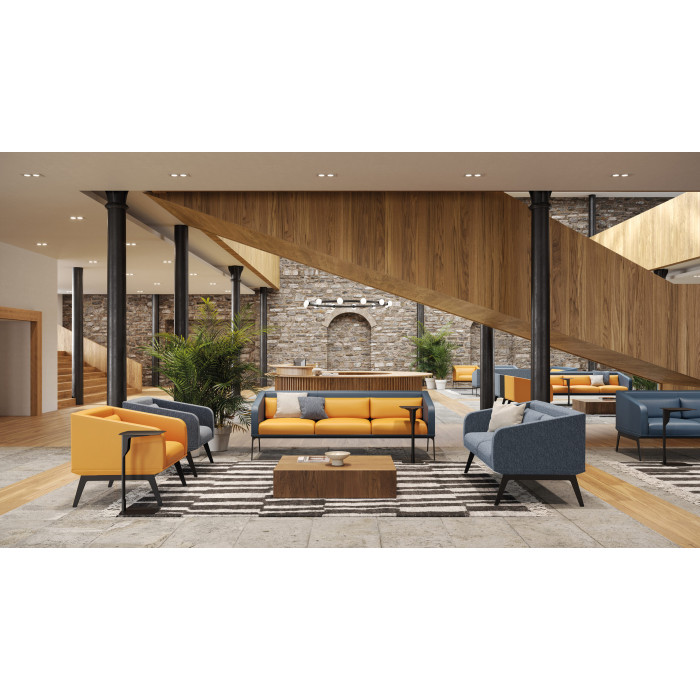 تتميز مجموعة Metro 15 من الكراسي والكنب المكتبية بشخصية قوية، وتتميز بهيكل فولاذي مغطى بالقماش ذو تصميم خفيف ولكنه متين، يرحب بالأحجام الناعمة والمريحة للمقاعد والوسائد، والتي يمكن تخصيصها بتشكيلة واسعة من الأقمشة المصنعة عالية الجودة.