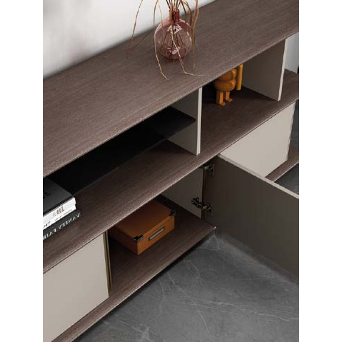 خزانة جانبية مع 4 أبواب خشبية وأرفف ◊ السطح العلوي: سطح بسماكة 25 مم مع تشطيب قشرة خشبية. ◊ التخزين: تخزين بأربعة أبواب مفتوحة. ◊ الإكسسوارات: رف زجاجي رمادي مقسّى في المنتصف. الحجم: - 2400W x 400D x 750H مم الشركة المصنعة / بلد المنشأ: Kano.cn، الصين