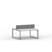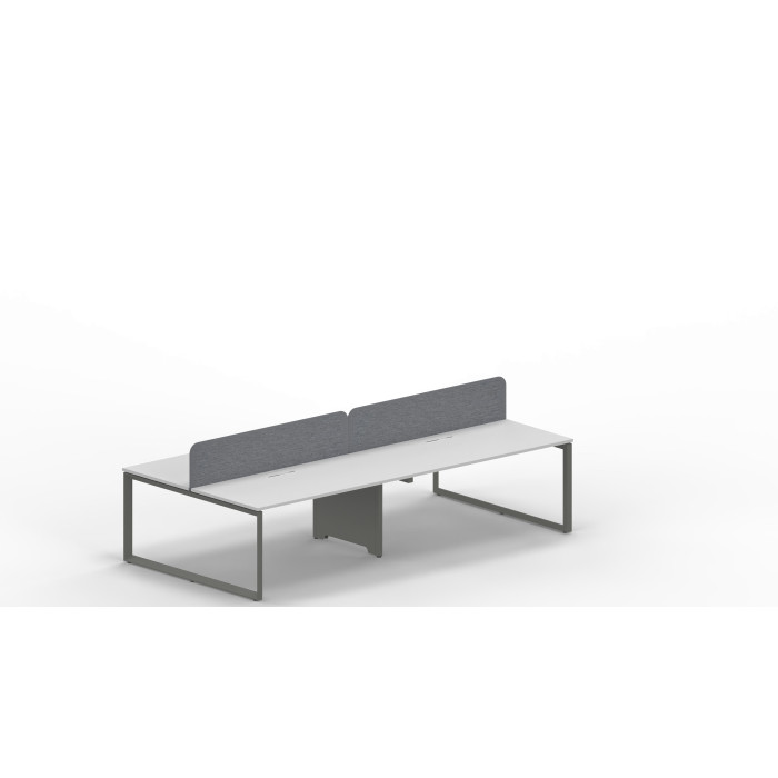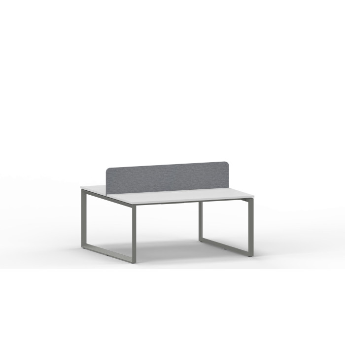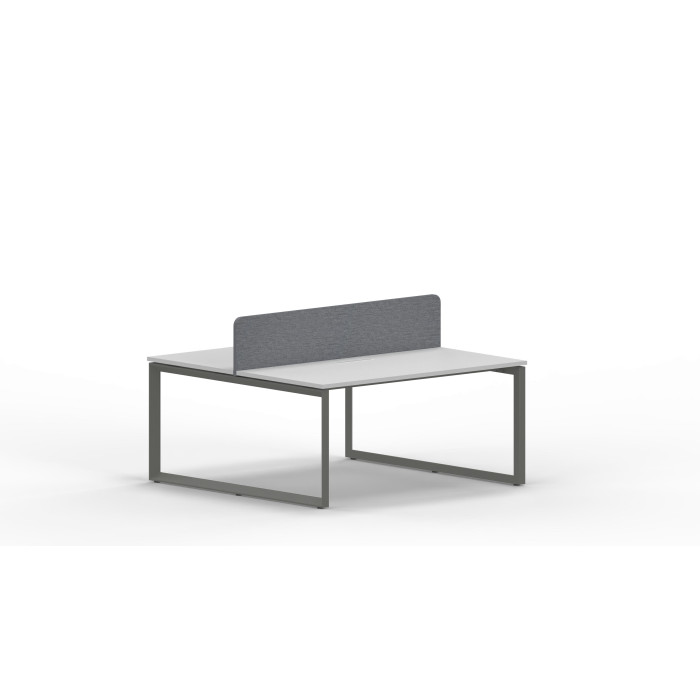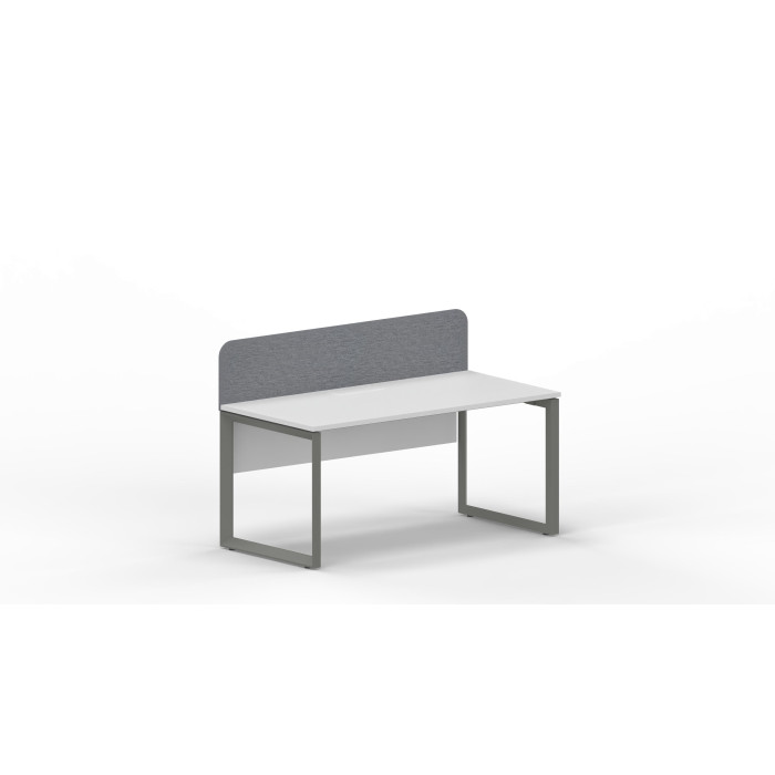 محطة عمل، سطح مستطيل مع تمديد وحاجز خصوصية. سطح الطاولة: مصنوع من لوح حبيبي مغطى بميلامين (MFC) مع حافة PVC بسُمك 25 مم. حاجز الخصوصية: تنجيد من القماش بارتفاع 350 مم. الهيكل مصنوع من أرجل فولاذية متصلة، قضبان ربط، ساق وسطى مع لوحات لرفع الكابلات، وصناديق أسلاك قابلة للطي. الحجم المتاح للتسليم السريع من المخزون: ♦ 1600W x 1600D x 750H مم