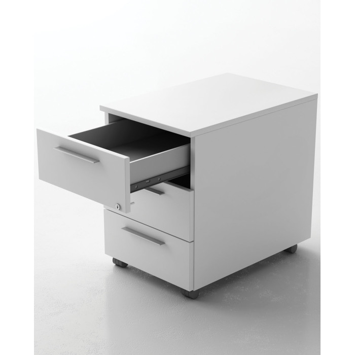 وحدة أدراج متحركة بثلاثة أدراج، الهيكل والواجهات الأمامية مصنوعة من ألواح بسمك 18 ملم. يتم تزويد الواجهات الأمامية للأدراج بحواف من ABS ومزودة بمقبض معدني. المواد: ميلامين سُمك الهيكل: 18 ملم سُمك اللوح الخلفي: 12 ملم العجلات: نايلون دوار PA6 (قطر 45 ملم) الحجم المتاح: 400 عرض × 590 عمق × 740 ارتفاع ملم الشركة المصنعة / بلد المنشأ: فريزا، إيطاليا