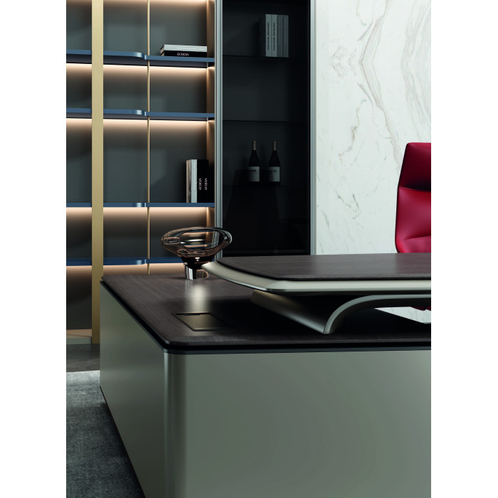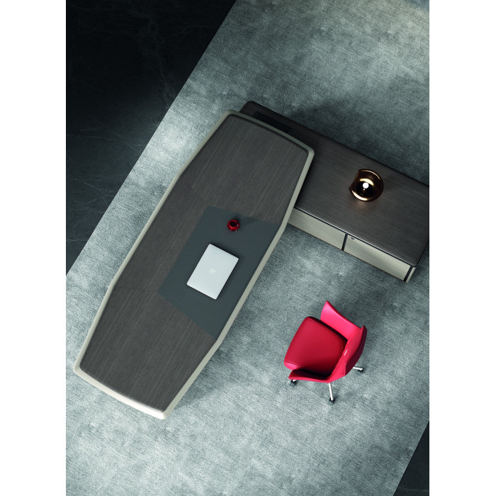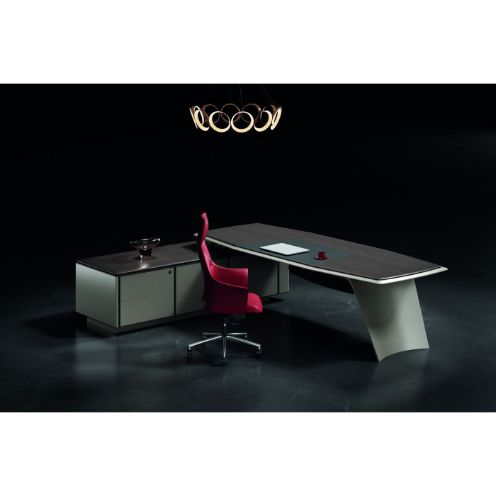 طاولة تنفيذية، سطح مكتب غير منتظم الشكل مع أرجل FRP، لوحة تغطية غير منتظمة، وخزانة جانبية يمين أو يسار. ◊ سطح المكتب: سطح مكتب غير منتظم الشكل مع قشرة خشبية وبطانة من الجلد الصناعي. سطح مزدوج، الطبقة العلوية من القشرة الخشبية وبطانة من الجلد الصناعي، والطبقة الثانية من الطلاء اللامع. سمك السطح 52 ملم. ◊ التخزين: خزانة جانبية مع سطح من القشرة الخشبية وجسم مطلي، باب مفتوح واحد ودرجين مع قفل ذكي، مساحة للـ CPU. ◊ إدارة الأسلاك: صندوق أسلاك قابل للدفع والسحب مع مقبسين للطاقة ومقبس بيانات على سطح الخزانة؛ مقبس طاقة واحد ومقبس بيانات واحد في مساحة الـ CPU. ◊ الأرجل: أرجل غير منتظمة الشكل مصنوعة من البلاستيك المدعم بالألياف. باستخدام الألياف، الإستر النباتي، ومسحوق الجير، تتراكم الطبقات بشكل متسلسل. ◊ الإطار الفولاذي: أنبوب فولاذي مربع بسماكة 2.5 ملم، مع سطح معالج بالرمل الأسود. الأحجام المتاحة للتسليم السريع من المخزون: الحجم: 2700 عرض × 2245 عمق × 760 ارتفاع ملم الشركة المصنعة / بلد المنشأ: Kano.cn، الصين
