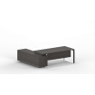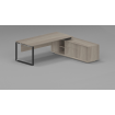 مكتب تنفيذي مع ملحق . تشطيب ميلامين بلون الجوز / البلوط المبيض مع أرجل معدنية مصقولة. سطح الطاولة مصنوع من لوح حبيبي بسمك 25 مم وحافة مائلة بزاوية 45 درجة، بأبعاد 2000 مم × 900 مم × 750 مم. تحتوي محلق به درج متحرك، ودرجين إضافيين، وباب متأرجح، وجميعها بحواف مائلة بزاوية 45 درجة. أبعاد الوحدة 2000 مم × 550 مم × 625 مم. اللوح الأمامي مصنوع من لوح حبيبي بسمك 16 مم بحافة مستقيمة من PVC، مدعوم بحامل من صفيحة معدنية. الإطار يحتوي على ساقين معدنيتين، وأربعة موصلات للأرجل من الألومنيوم، واثنين من القضبان.