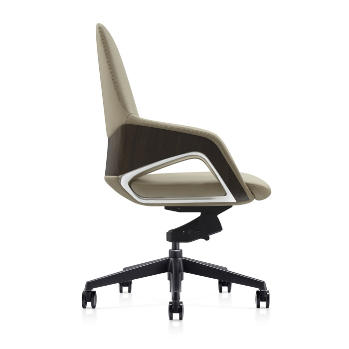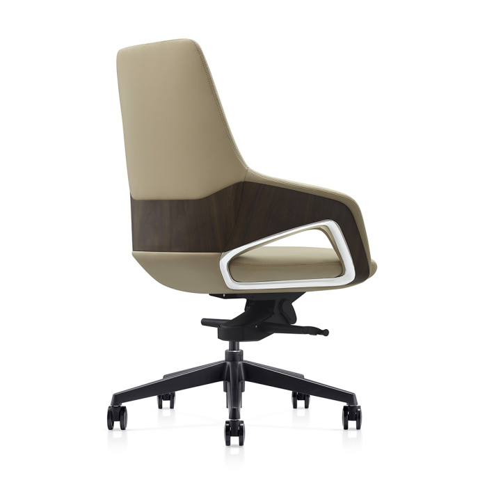 كرسي تنفيذي بمسند ظهر متوسط. تم تصميم الظهر بمادة ABS وطباعة نقل الماء، ورغوة عالية الكثافة مع إطار بلاستيكي بالداخل. آلية إمالة الركبة بقفل 4 أوضاع، وقاعدة من الألومنيوم مطلية باللون الأسود، ورافعة غازية سوداء وعجلات من البولي يوريثين، ومسافة رفع الغاز 100 مم. اللمسة النهائية: جلد البولي يوريثين الشركة المصنعة / بلد المنشأ: Furicco Furniture، P.R.C