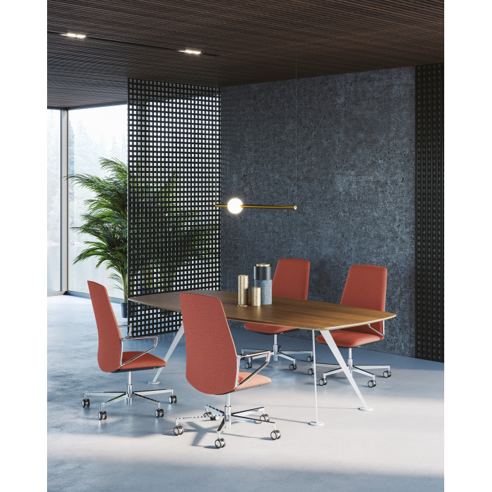 تضفي طاولات الاجتماعات طابعًا مميزًا على المجموعة وتلعب دورًا أساسيًا، حيث يتعين عليها الترحيب بالجلوس حولها وتمثيل صورة الشركة. تتميز طاولات الاجتماعات في مجموعة Spike بأناقتها الخاصة وراحتها العالية من الناحية الهندسية. سواءً للاجتماعات، المؤتمرات أو جلسات العصف الذهني، تجمع Spike بين جميع الميزات الضرورية للتواصل بين المهنيين. يمكن تجهيز جميع طاولات الاجتماعات بمنافذ علوية لتسهيل اتصال المشاركين وتعاونهم وتفاعلهم. تتيح أنظمة الكهرباء المخفية المتنوعة الحفاظ على التصميم النظيف والبسيط للطاولة، مع تلبية جميع متطلبات المكتب الحديث. المواد المتاحة للأسطح: قشرة خشب، زجاج وميلامين. سماكة سطح القشرة الخشبية: 29 مم. سماكة سطح الزجاج: 12 مم زجاج مقسى. سماكة سطح الميلامين: 28 مم. الأرجل والإطار متوفرون بتشطيبات بيضاء، سوداء وكروم