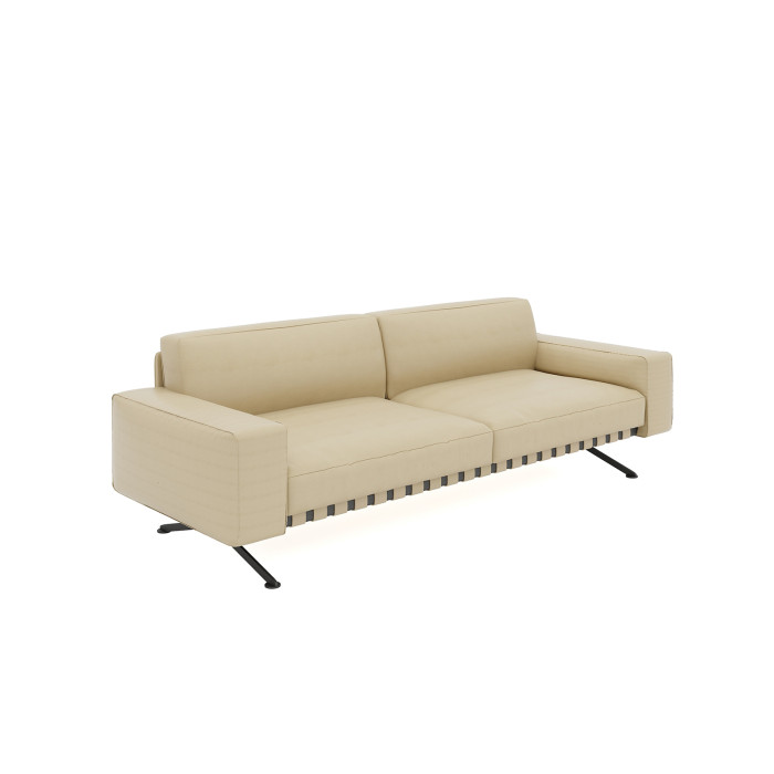 طقم كنب تنفيذي، يتكون من كرسي بثلاثة مقاعد وكرسيين بذراعين. مقعد ومسند ظهر مبطنان بالجلد الطبيعي مع أرجل معدنية.