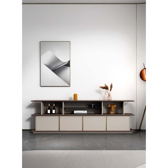 خزانة جانبية مع 4 أبواب خشبية وأرفف ◊ السطح العلوي: سطح بسماكة 25 مم مع تشطيب قشرة خشبية. ◊ التخزين: تخزين بأربعة أبواب مفتوحة. ◊ الإكسسوارات: رف زجاجي رمادي مقسّى في المنتصف. الحجم: - 2400W x 400D x 750H مم الشركة المصنعة / بلد المنشأ: Kano.cn، الصين