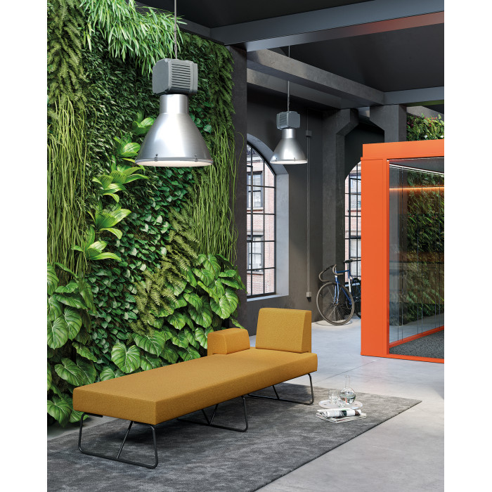 وسادة المقعد: هيكل مصنوع من الخشب الرقائقي مع حشوة من رغوة البولي يوريثان غير قابلة للتشوه. الأشرطة المطاطية المتقاطعة داخل الوسادة تعزز الشعور بالراحة. مساند الظهر والأذرع: هيكل مصنوع من الخشب الرقائقي مع حشوة من رغوة البولي يوريثان غير قابلة للتشوه. يمكن تهيئة المقعد بذراع منخفض أو مرتفع. الوحدات الزاوية بزاوية 45° و 90° متوفرة إما مع وسادة أو مع سطح من الميلامين بسماكة 18 مم. حسب الطلب، يمكن تزويد وحدة الزاوية الميلامين بالكهرباء.