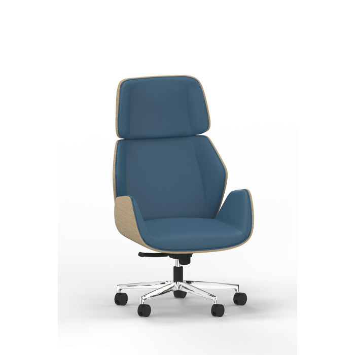 كرسي تنفيذي بمسند ظهر مرتفع، قشرة من خشب البلوط المصقول الطبيعي، إمالة الركبة متعددة الكتل مع ذراع التحكم في شد الجانب. قاعدة من الألومنيوم المصقول بخمس نجوم مع عجلات. المقاس: 630 عرض × 700 عمق × 1200-1290 ارتفاع مم الشركة المصنعة / بلد المنشأ:- Sitlosophy، إيطاليا