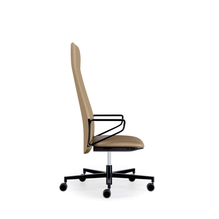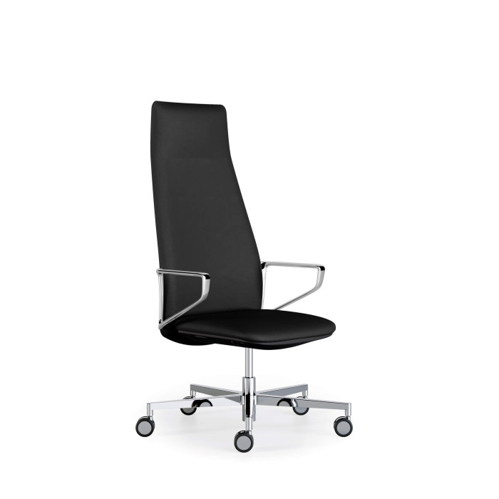 كرسي تنفيذي بظهر عالٍ، ظهر من البولي يوريثان المبرد بالبرودة: مرن (65 كجم/م³)، مقاوم للحريق، خالٍ من مركبات الكلوروفلوروكربون، مع إدخال فولاذي. مقعد Bia Executive: صفيحة معدنية مضغوطة مع حشوة بولي يوريثان مرنة مقاومة للحريق وخالية من مركبات الكلوروفلوروكربون؛ غطاء سفلي للمقعد من مادة البولي بروبيلين. جهاز كرسي Bia Executive: آلية متزامنة ذاتية المعايرة قابلة للقفل في 3 أوضاع مع رافعة مدمجة (زاوية الإمالة: 18° للظهر، 1° للمقعد؛ وضعية البداية للمقعد: 1.5° للخلف). الآلية مدمجة في المقعد وليست مرئية من الخارج. ضبط ارتفاع المقعد عن طريق رافعة مدمجة. مسند ذراع من الألومنيوم المصبوب بالضغط: نوع مغلق، شبه منحرف، مرتبط بالظهر. أجزاء الألومنيوم متوفرة بتشطيب مصقول أو مطلي باللون الأسود. قاعدة خماسية بتشطيب من الألومنيوم المصقول أو مطلي بالإيبوكسي الأسود. عجلات دوارة ذاتية الإغلاق بطبقتين من المطاط. مادة التنجيد: خيارات متعددة - جلد / جلد صناعي / قماش القاعدة: ألومنيوم مصقول / ألومنيوم أسود الحجم: 610 عرض × 550 عمق × 1210-1320 ارتفاع مم الشركة المصنعة / بلد المنشأ: Frezza، إيطاليا
