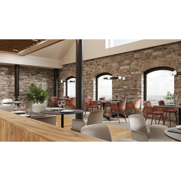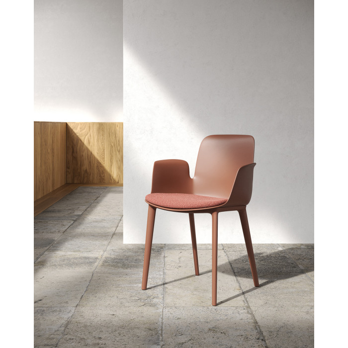 كرسي متعدد الاستخدامات، يتكون من هيكل من مادة البولي بروبيلين مع مساند للذراعين. يتوفر الهيكل الموحد بخمسة ألوان مختلفة، حيث أن اللون Earth L1M2 مصنوع من مادة البولي بروبيلين المعاد تدويره بنسبة 100% والمستدامة بيئيًا بالكامل. بالإضافة إلى ذلك، يتميز اللون Cream L7M1 بأنه مصنوع من مادة البولي بروبيلين المعاد تدويره بنسبة 70% وهو مقاوم للحريق (أي عيوب تظهر تعتبر من الخصائص المميزة للمادة المعاد تدويرها). يمكن إضافة وسادة مغطاة بالقماش أو الجلد الصناعي إلى الهيكل الموحد. يتم ضبط ارتفاع المقعد بواسطة نظام رفع بالغاز (فقط للكرسي المزود بعجلات). تتوفر القاعدة بالإصدارات التالية: ◊ إطار بأربع أرجل من مادة البولي بروبيلين متوفر باللون الأسود (معاد تدويره بنسبة 100%)، أو ملون (بالألوان: Cream، Gentle Blue RAL 250 60 15، Earth، Green Grey RAL 7009) أو بتأثير الفلين. ◊ إطار بأربع أرجل من الخشب الصلب بتشطيب بلوط؛ ◊ قاعدة بأربع نجوم من الألمنيوم المصقول، الأبيض أو الأسود على قواعد ثابتة؛ ◊ قاعدة هرمية بأربع نجوم من الألمنيوم المصقول أو النايلون الأبيض أو الأسود على قواعد ثابتة. ٭ الحجم: 550W × 575D × 820H مم (إطار بأربع أرجل من البولي بروبيلين) ٭ الحجم: 540W × 51D × 805H مم (قاعدة هرمية بأربع نجوم على قواعد ثابتة) ٭ الحجم: 540W × 51D × 805H مم (قاعدة هرمية بأربع نجوم على قواعد ثابتة) الشركة المصنعة / بلد المنشأ: Frezza، إيطاليا